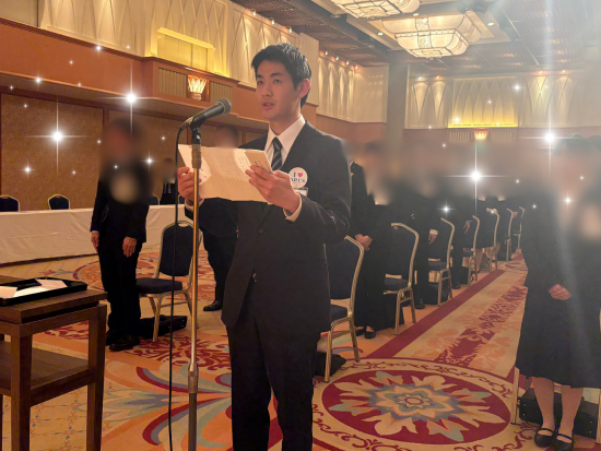 式が始まる前の会場は、期待と緊張が入り混じる空気に包まれていました。スーツ姿の新人達からは、社会人としての第一歩を踏み出す誇らしさが伝わってきました。入社式では、会社からの歓迎の言葉とともに、社会人としての心構えが伝えられました。代表として答辞を務めた新入社員も、緊張しながらも堂々とスピーチを行い、その姿に成長の可能性を感じました。