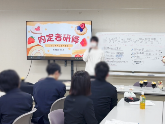 「初めての顔合わせで不安がありましたが、大学生の方々が作って下さったスイーツを頂いたり、入社までの説明もして頂き、楽しい時間を過ごさせて頂きました!」