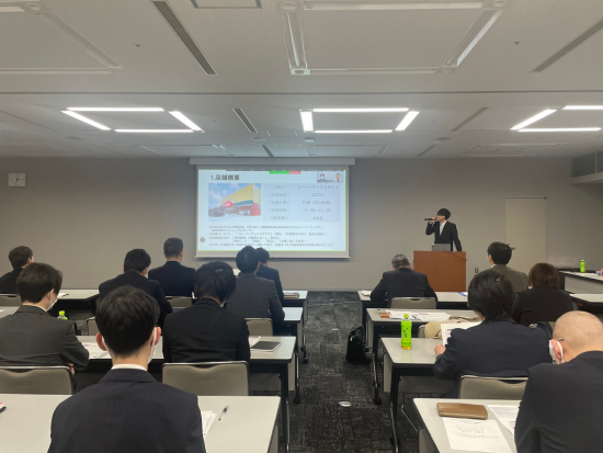 発表では、研修期間中に実施した市場調査や売場改善の取り組み、販売実績の報告に加え、データを活用した分析内容について紹介しました。実際の売場での実践を通じて得た成果や課題を具体的に共有し、会場参加者およびWEB参加者に向けて、わかりやすく発信しました。